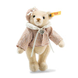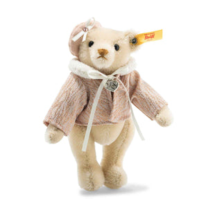 SH026881This 16 cm tall Great Escapes Paris Teddy Bear embodies the ideas of Parisian chic and elegance. Wonderfully soft design made of the finest mohair and with 5 joints. Featuring a little peppy cap sewn in place on the right ear. She is a blonde damsel featuring warm pastel tones to accent her appearance along with a stylish jacket featuring a loop and heart pendant. The lovingly crafted gift box in a book design with country-specific details is a perfect match. With viewing window in the magnetically sealing door. The rear of the package features an integrated postcard??�perfect for a handwritten message to a loved one.