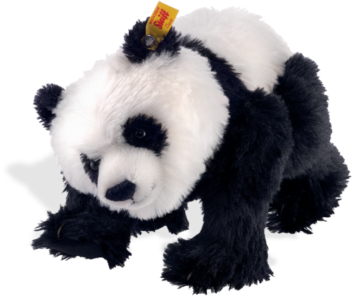 SH035753Siro Masterpiece is a beautiful piece made from black and white mohair and is five-way jointed with flat grey paw pads - so you can sit or stand him up nicely. He has black shiny eyes surrounding his famous black patches along with hand embroidered matching black nose and mouth. A rare and much loved animal.